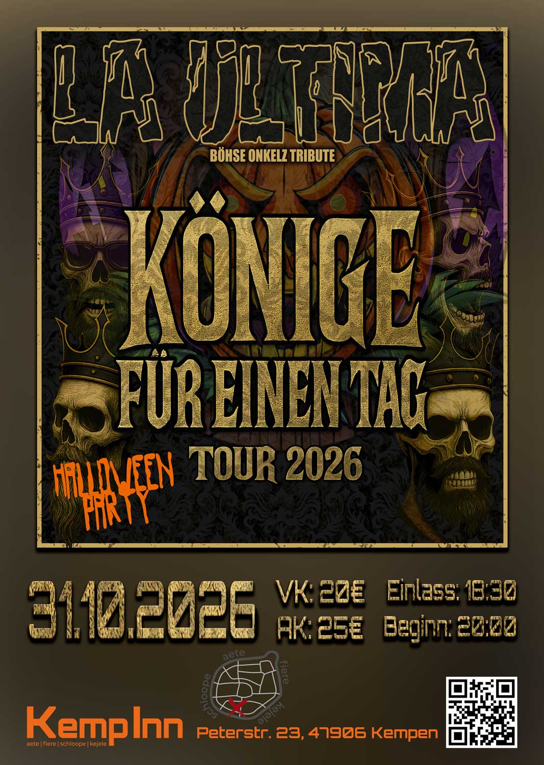 Die sympathischen Partykönige des Deutschrock sind wieder unterwegs und versammeln die "Familie" zur gemeinsamen Eskalation. Mit ihrer energiegeladenen Show, den besten Gassenhauern und raren Perlen der legendären Böhsen Onkelz im Gepäck, wird es "eine dieser Nächte". Lasst euch von den "Ersatzlegenden" mit Kultcharakter in ihren Bann ziehen! Die Band La Ultima hat sich mit ihrer […]